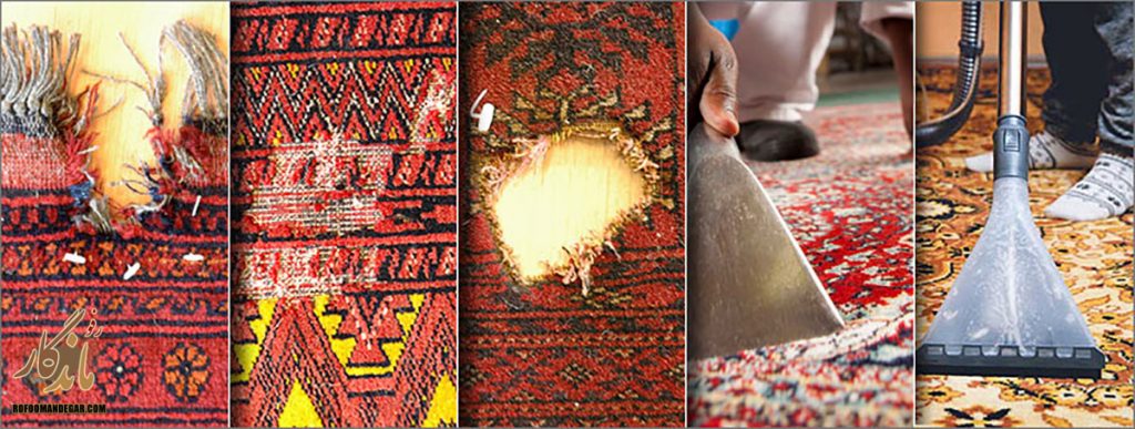 در مواردی فرش دستباف و ماشینی به دلایل و شیوههای گوناگونی دچار سوختگی میشود. سوختگی فرش ممکن است به دلایل گوناگونی همانند گذاردن قابلمه و ظروف فلزی بر روی فرش، قرار گرفتن اتو بر روی آن، افتادن تکه آتشی بر روی فرش، افتادن سیگار بر روی فرش و قرار گرفتن جسم داغ بر روی فرش باعث میشود تا فرش به آسیبی جدی دیده و در نتیجه آن رنگهای سطحی و همچنین پرزهای فرش (پشم، ابریشم و یا کرک) تغییر کرده و یا دچار فرسایش و از بین رفتگی میشود. برای هر یک از سوختگیهای مذکور باید به شیوههای مختلف و متفاوتی عمل کرده که برخی از آنها در ادامه تشریح میشود.